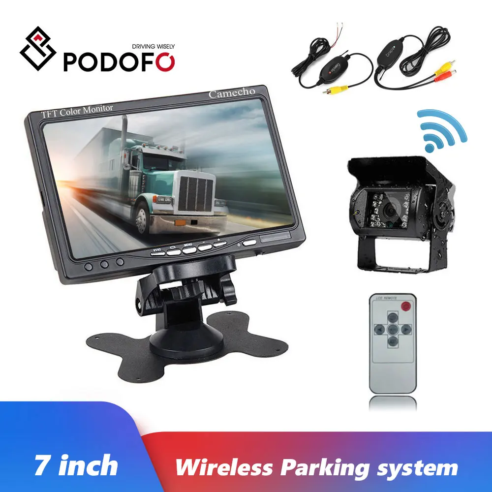Promo Podofo 12V 24V Wireless Car IR Night Vision Rear View Backup Camera Kit + 7" TFT LCD Monitor For Tr